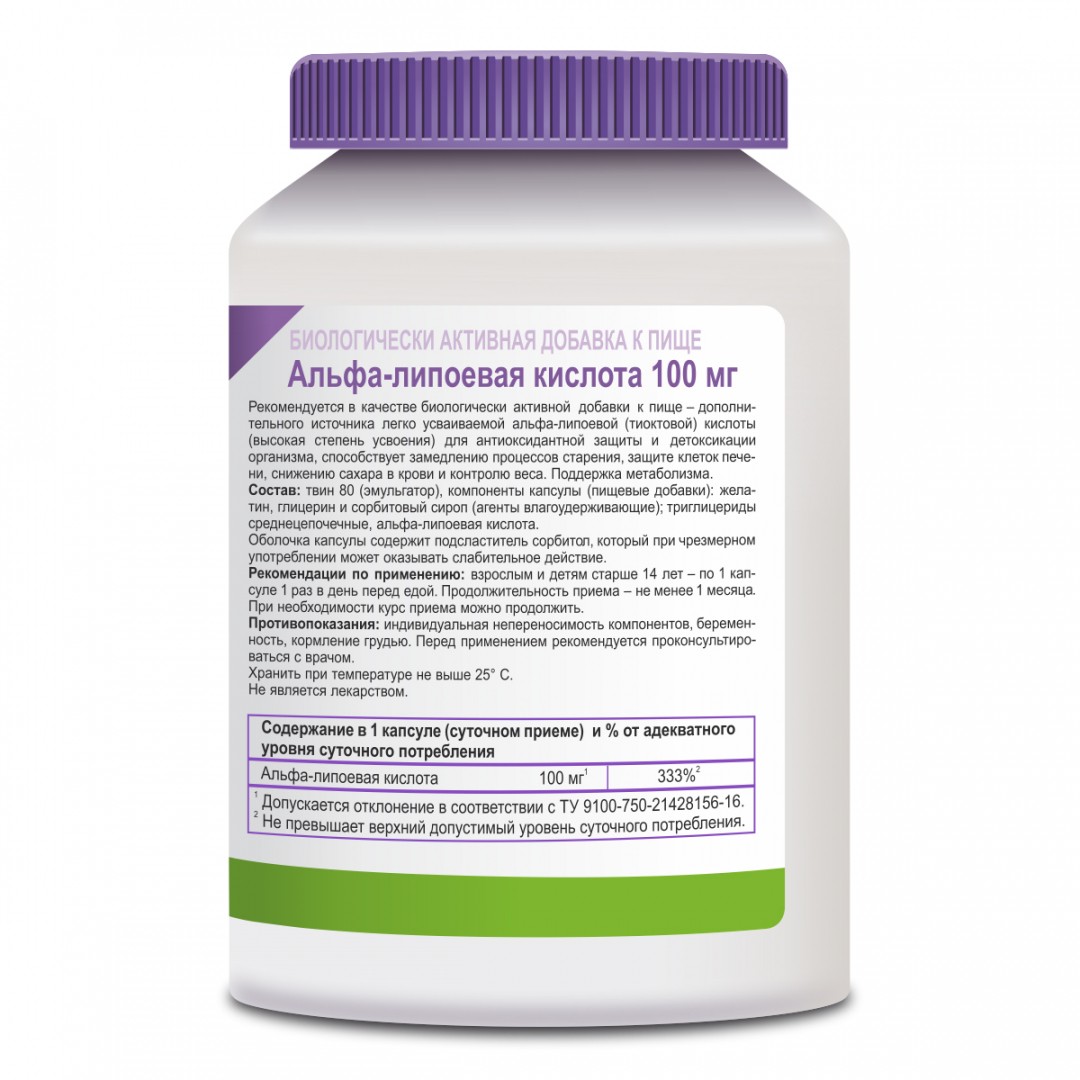 В качестве биологически активной добавки к пище - дополнительного источника легкоусваиваемой альфа-липоевой (тиоктовой) кислоты (высокая степень усвоения), для антиоксидантной защиты и детоксикации организа, способствует замедлению процессов старения, защите клеток печени, снижению сахара в крови и контролю веса. Поддержка метаболизма.)Срок годности от даты изготовления