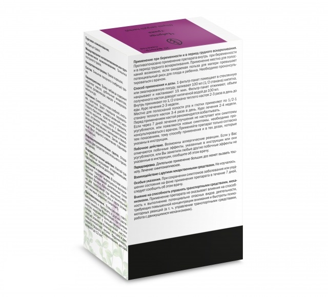 Средство растительного происхождения; оказывает отхаркивающее, противомикробное и анальгезирующее действие.
